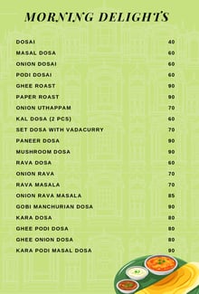 Discover authentic Tamil Nadu vegetarian cuisine at Shri Durga Bhavan. From hearty breakfasts to flavorful meals and snacks, our menu is crafted with fresh ingredients and rich traditions. Explore and enjoy a true South Indian feast!